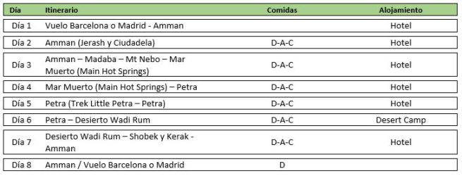 Este es un ejemplo de viaje que podemos organizar en Jordania.