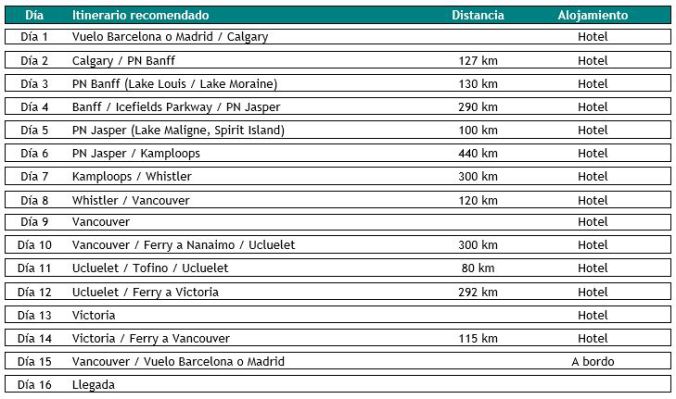 Este es un ejemplo de viaje que podemos organizar en Canadá.